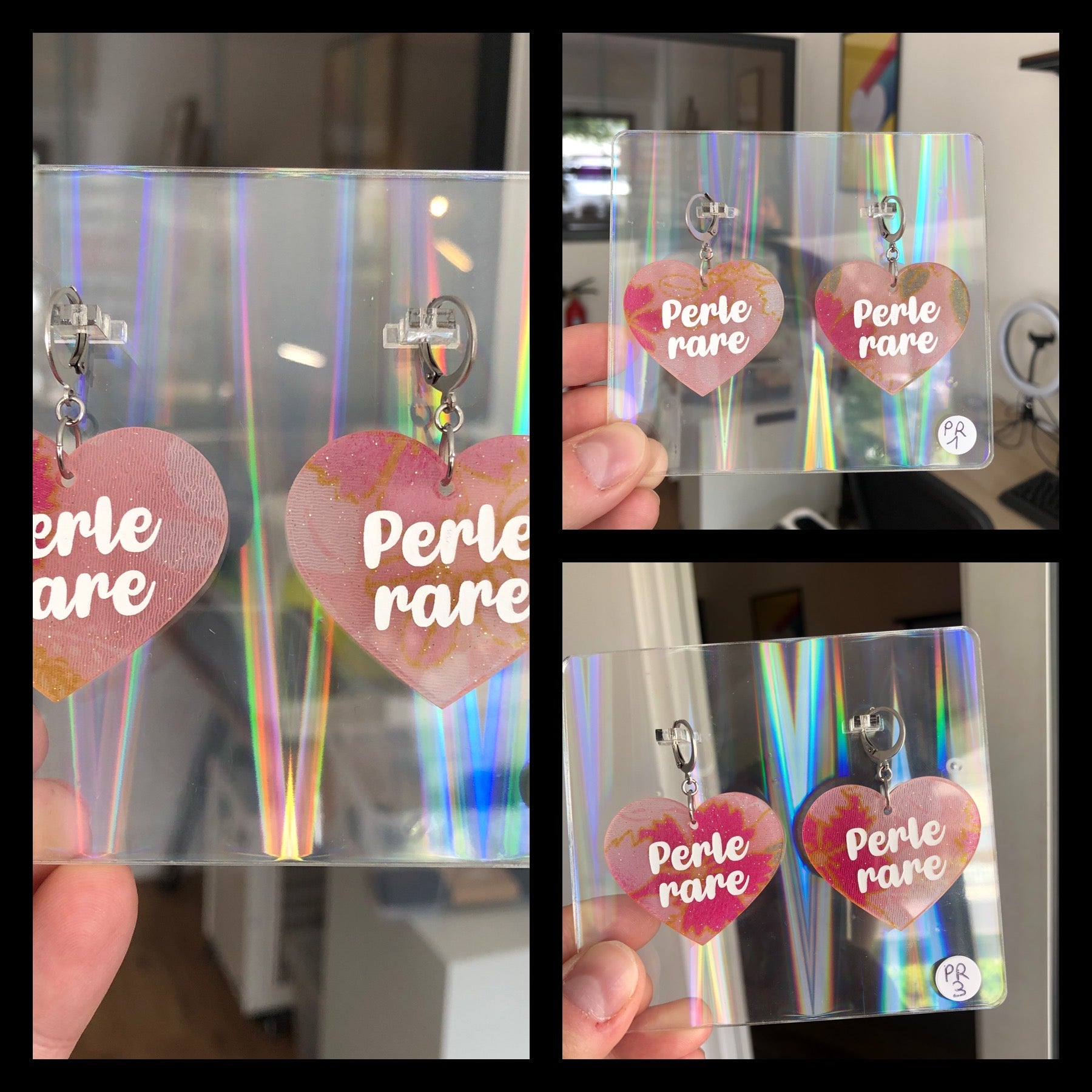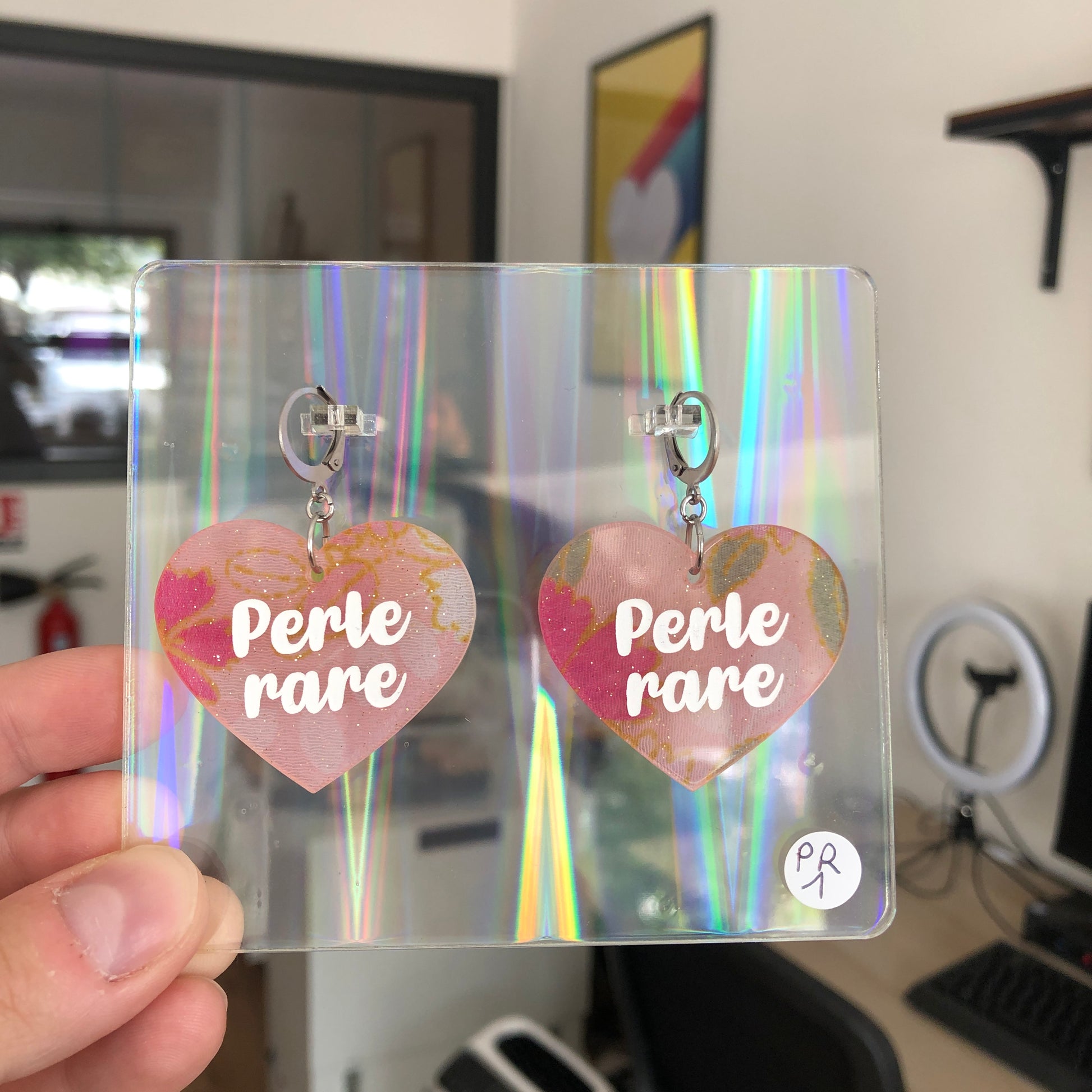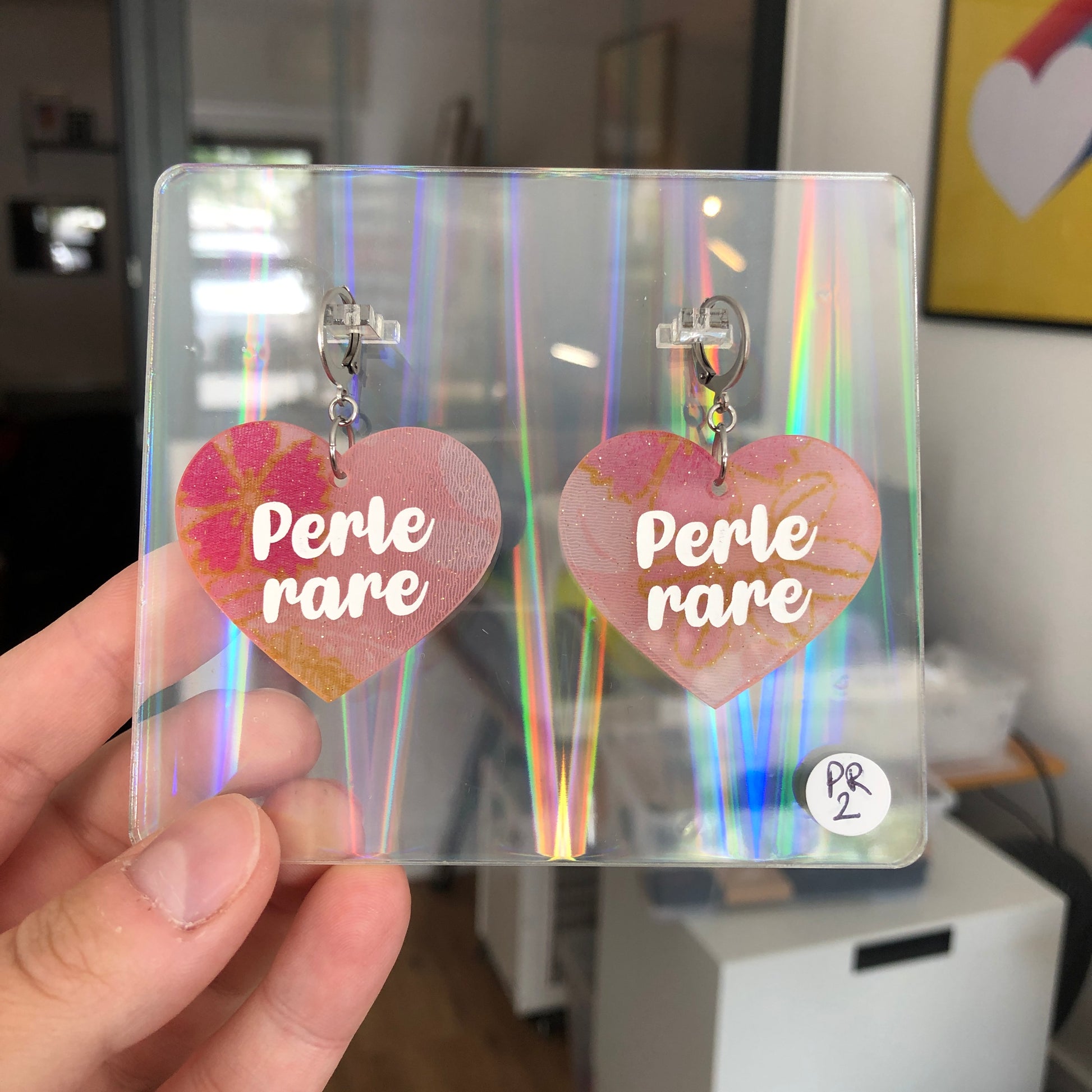 - Produit artisanal : Cette paire de boucles d'oreilles a été faite avec amour par mes petites mains, et de part la nature même de l'acrylique, elle peut avoir de légères rayures ou petits éclats, c'est un produit artisanal. Le texte est peint à la main, la densité de peinture peut-être légèrement irrégulière.