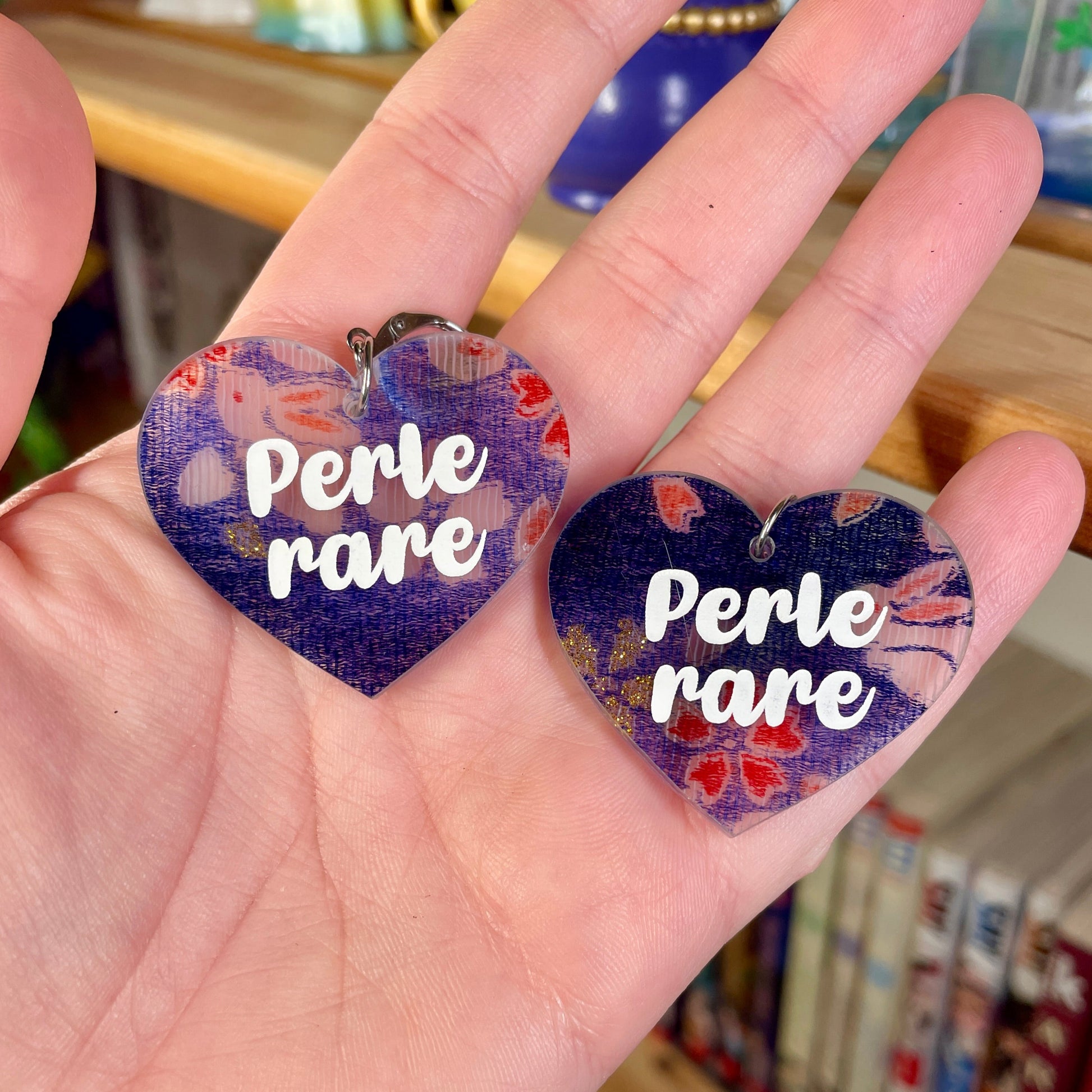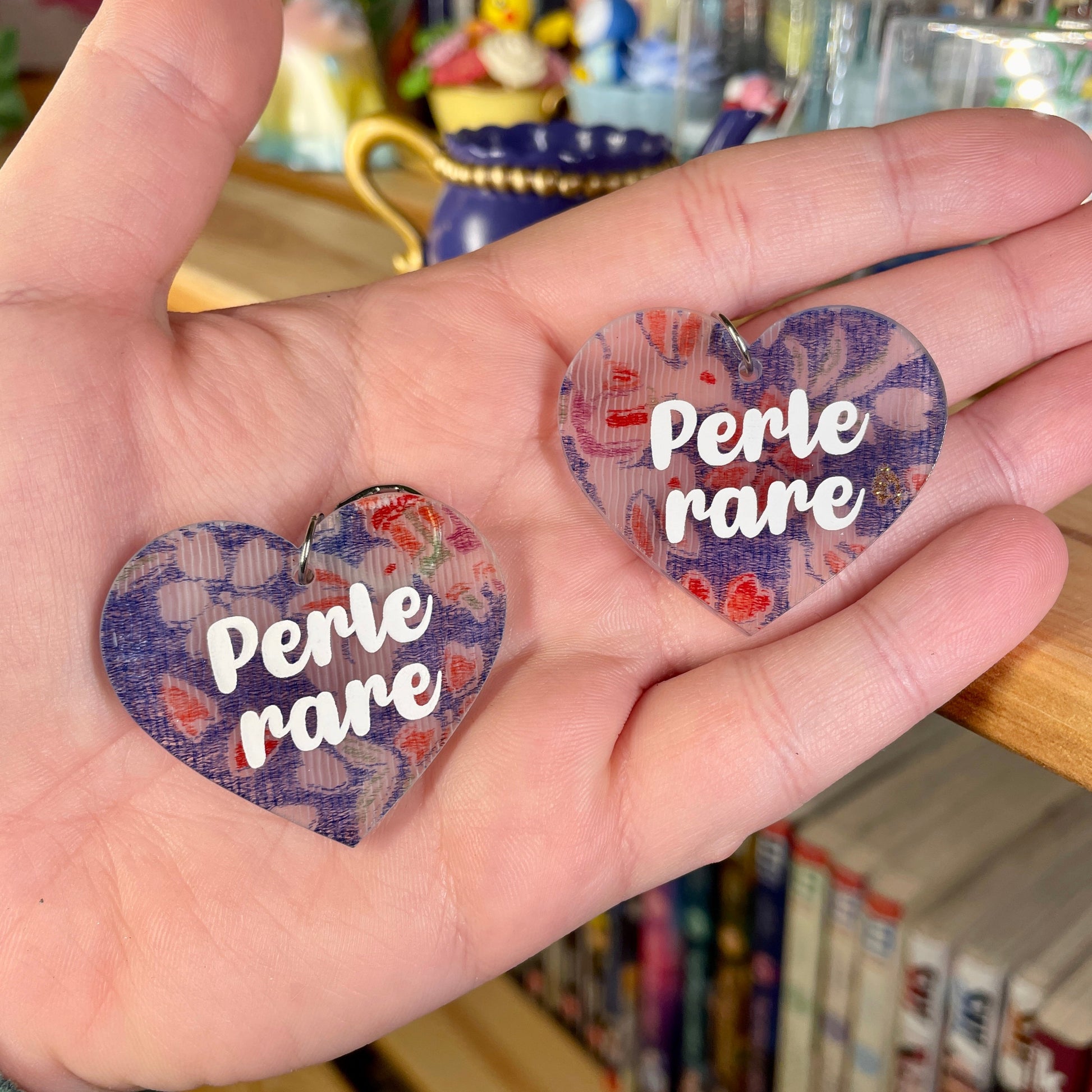 Boucles d'oreilles "Perle rare" en acrylique transparente avec du tissu japonais à l'intérieur