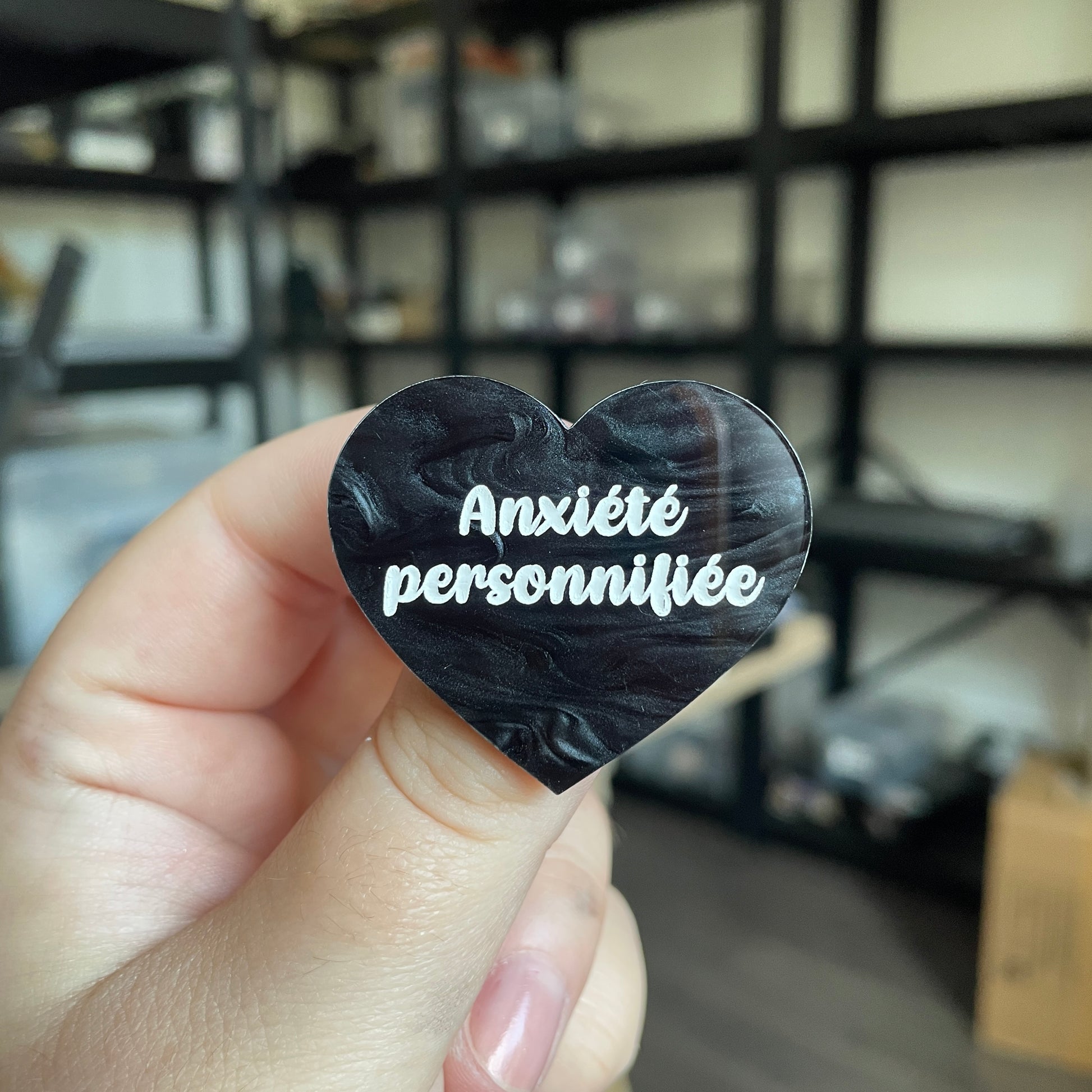 Broche "Anxiété personnifiée" en acrylique marbrée noire