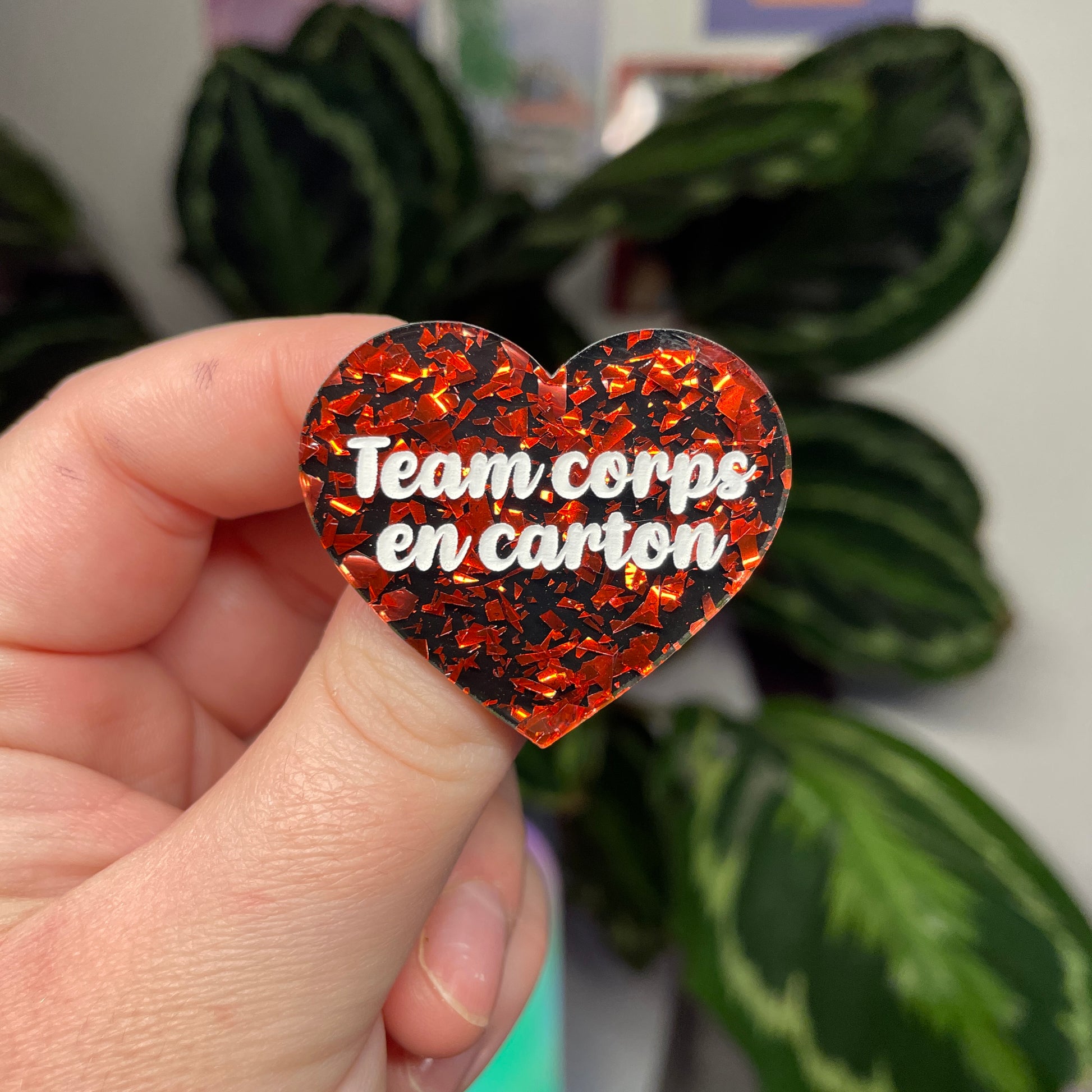 [Contrôle technique] Broche "Team corps en carton" en acrylique noire avec des éclats de confettis rouges