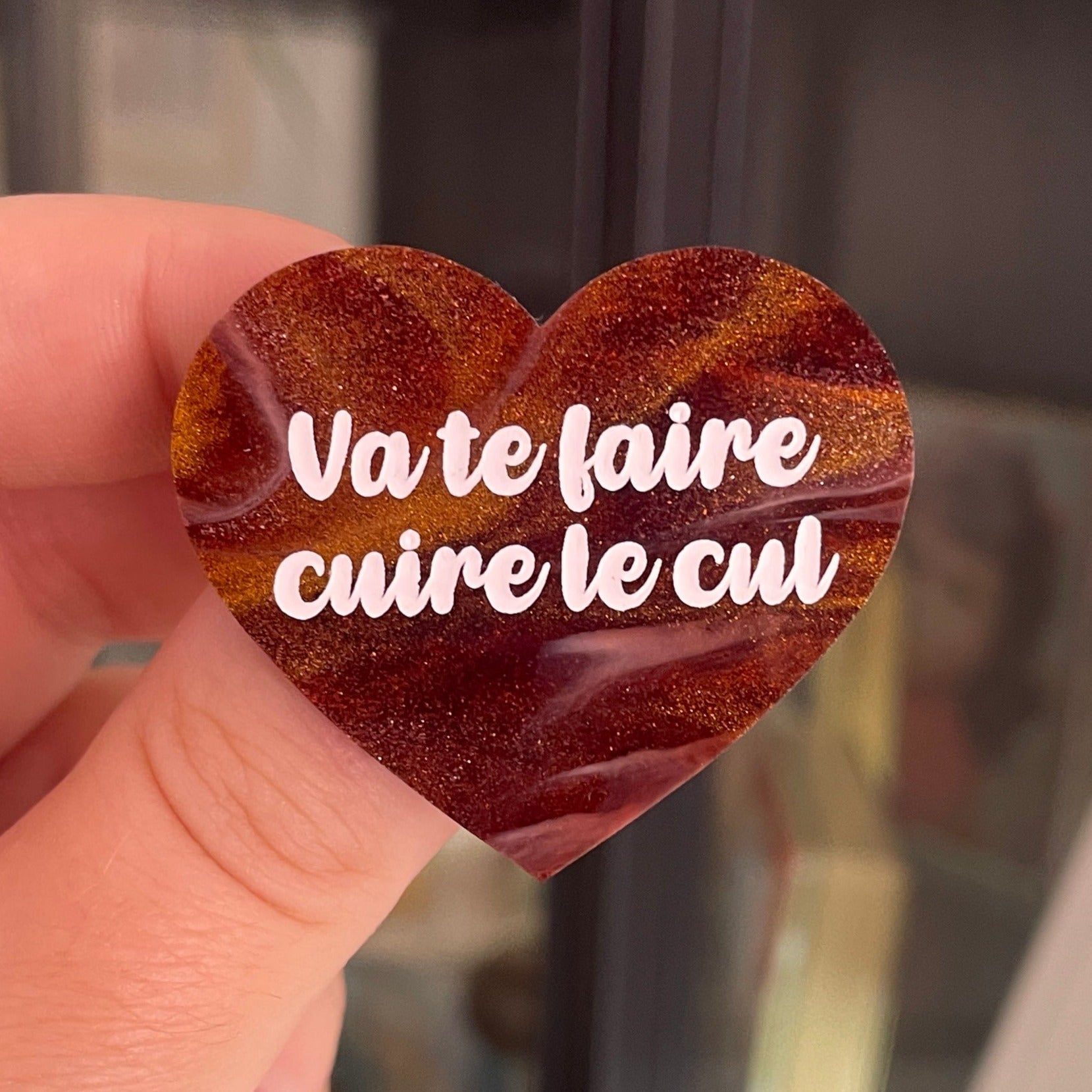 ![[CONTRÔLE TECHNIQUE] Broche "Va te faire cuire le cul" en acrylique marbrée marron, blanche et dorée](http://laura-coupeau.fr/cdn/shop/files/IMG_7509.jpg?v=1719597356&width=1445)