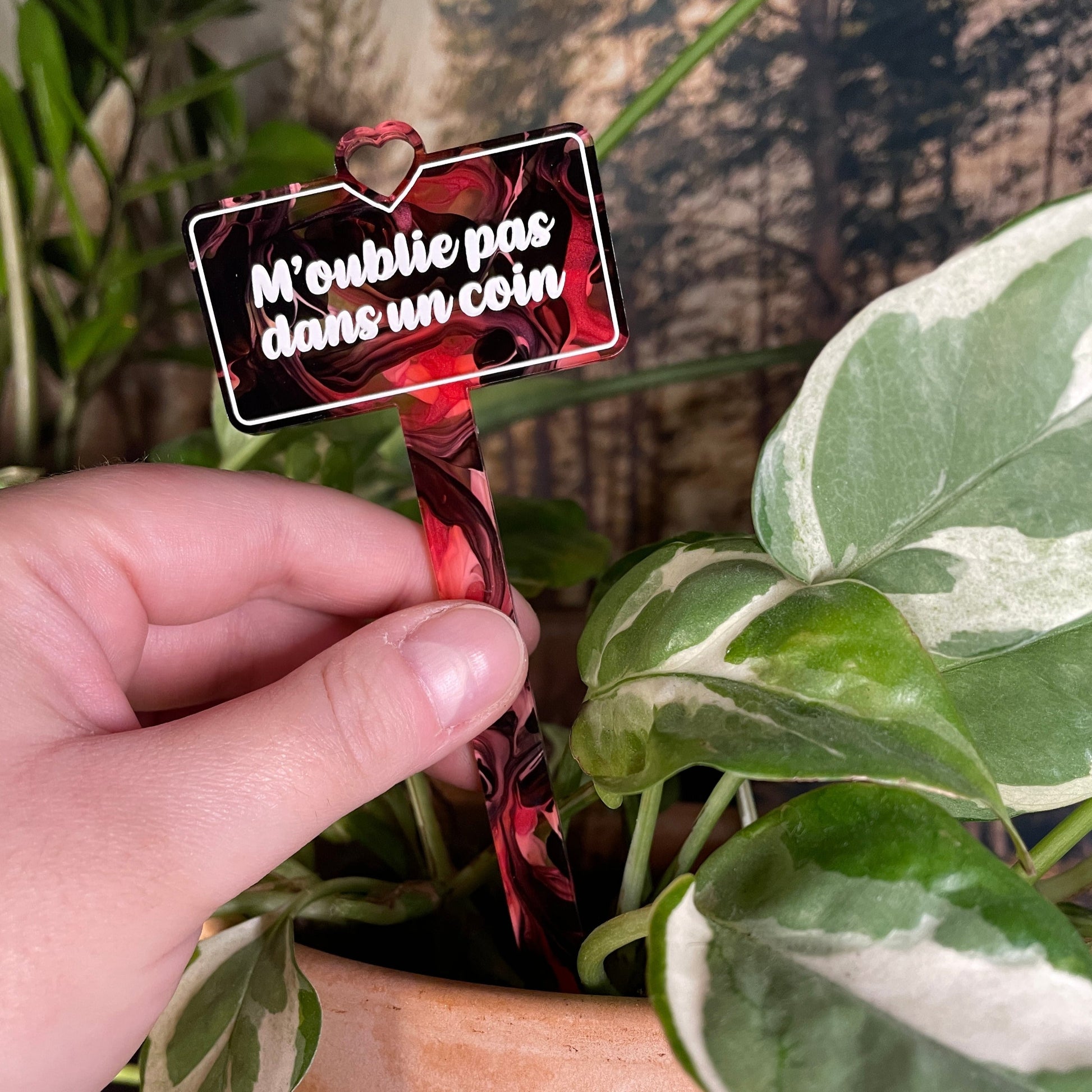 ![[CONTRÔLE TECHNIQUE] Pic à plante "M'oublie pas dans un coin" en acrylique marbrée rouge/rose, noire, blanche et transparente](http://laura-coupeau.fr/cdn/shop/products/IMG_3980_cb8a89f2-bcad-4f90-a6ed-9baee60595c0.jpg?v=1674830377&width=1445)