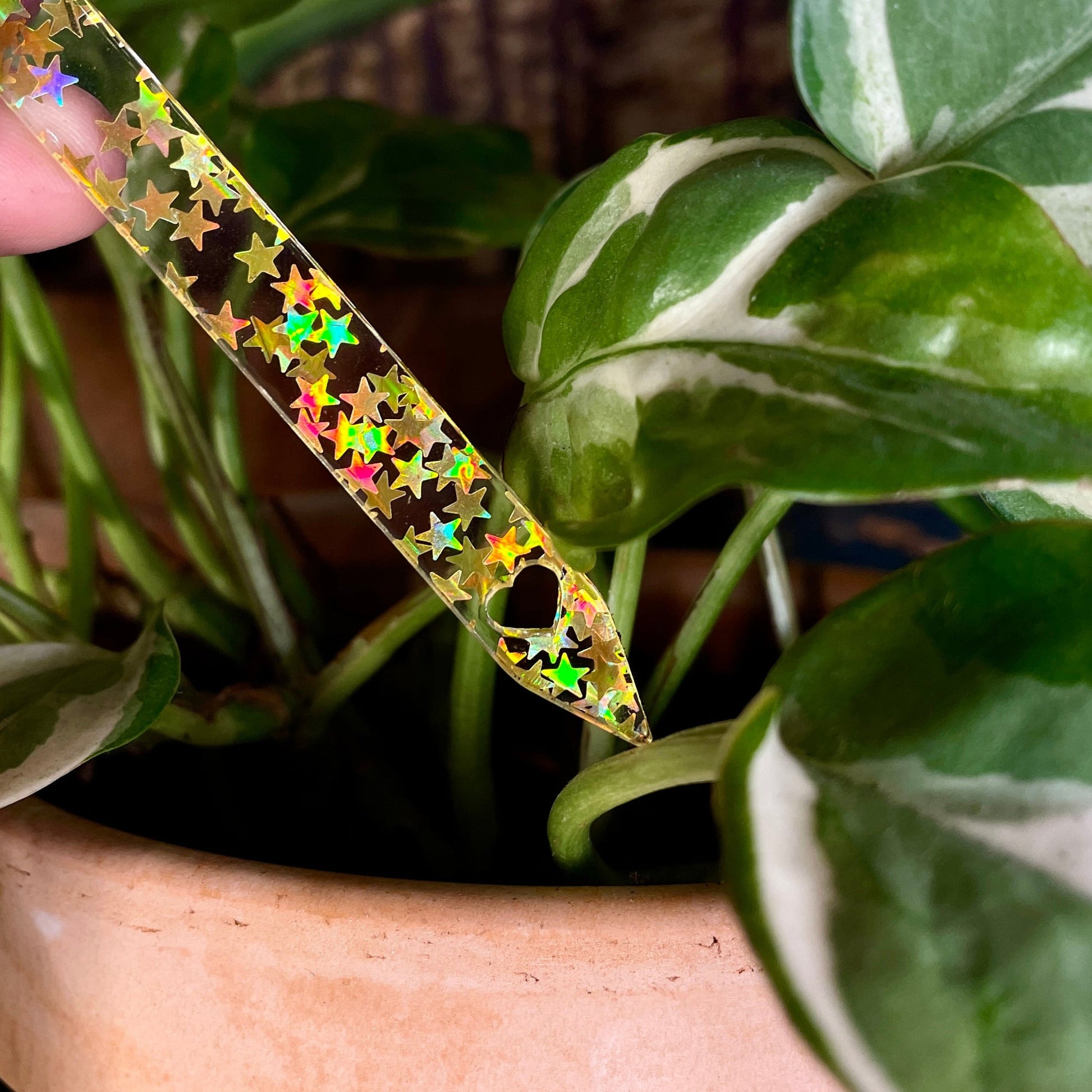 [CONTRÔLE TECHNIQUE] Pic à plante "Une feuille à la fois" en acrylique transparente avec des étoiles dorées