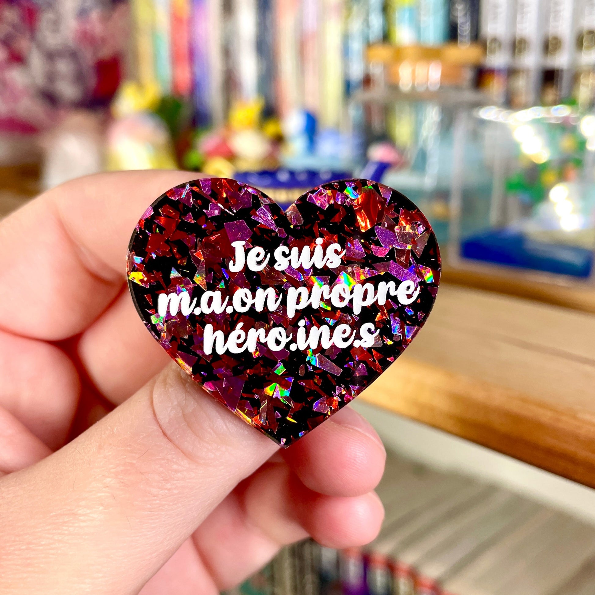 ![[INCLUSIF] Broche "Je suis m.a.on propre héroi.ne.s" en acrylique à gros confettis rouges et roses holographiques sur fond noir](http://laura-coupeau.fr/cdn/shop/products/IMG_4159.jpg?v=1674744003&width=1445)