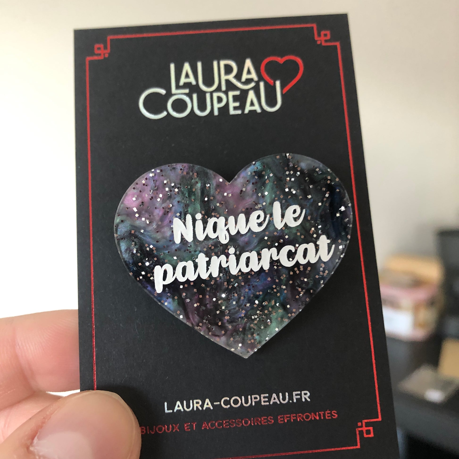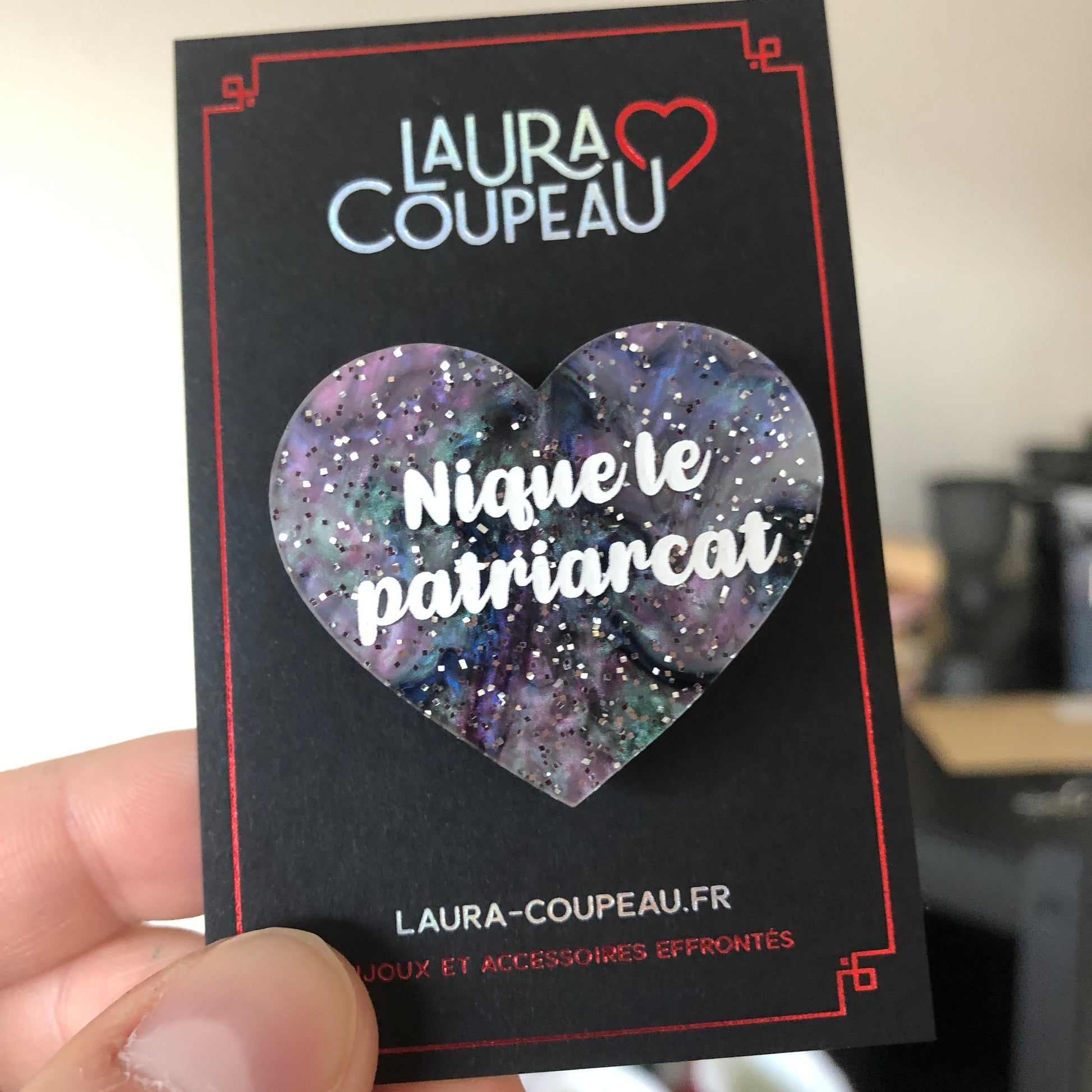 ![[Uniques] Broche "Nique le patriarcat" en acrylique marbrée à paillettes](http://laura-coupeau.fr/cdn/shop/products/NLP8.jpg?v=1645802567&width=1445)